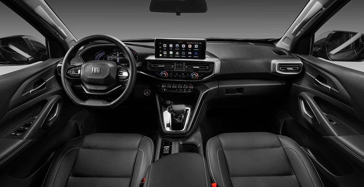 • Central multimídia com tela de 10” touchscreen; conexão wireless para Apple CarPlay e Android Auto; Comandos de voz Bluetooth, MP3, Rádio AM/FM