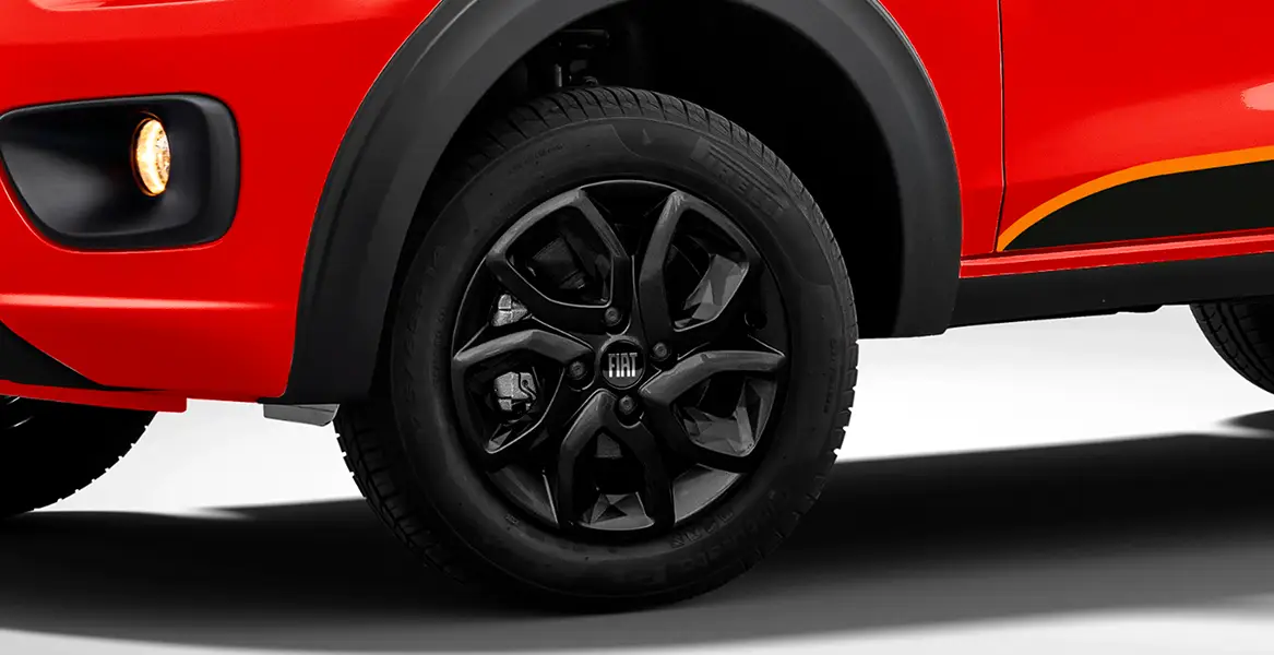 • Rodas de aço estampado 5.5 x 14' com calotas integrais + Pneus com baixa resistência a rolagem 175/65 R14