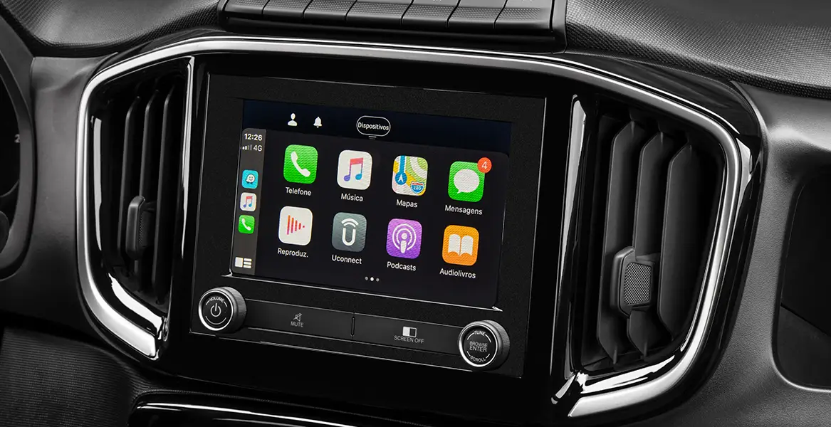 • Central Multimídia de 7" com tela touchscreen e sistemas Android Auto e Apple Car Play com conexão Wireless, Volante multifuncional, Conexão Bluetooth, Entrada USB, Sistema de reconhecimento de voz