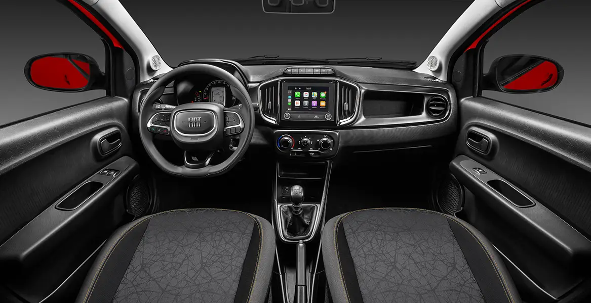• Central Multimídia de 7" com tela touchscreen e sistemas Android Auto e Apple Car Play com conexão Wireless, Volante multifuncional, Conexão Bluetooth, Entrada USB, Sistema de reconhecimento de voz